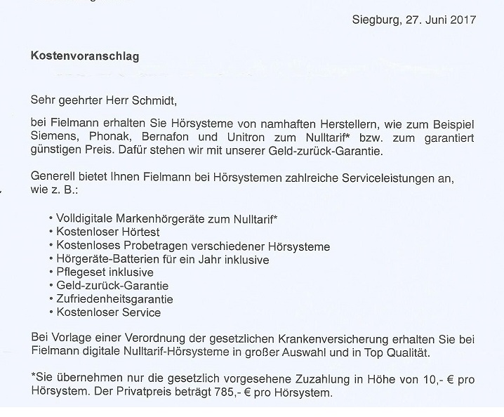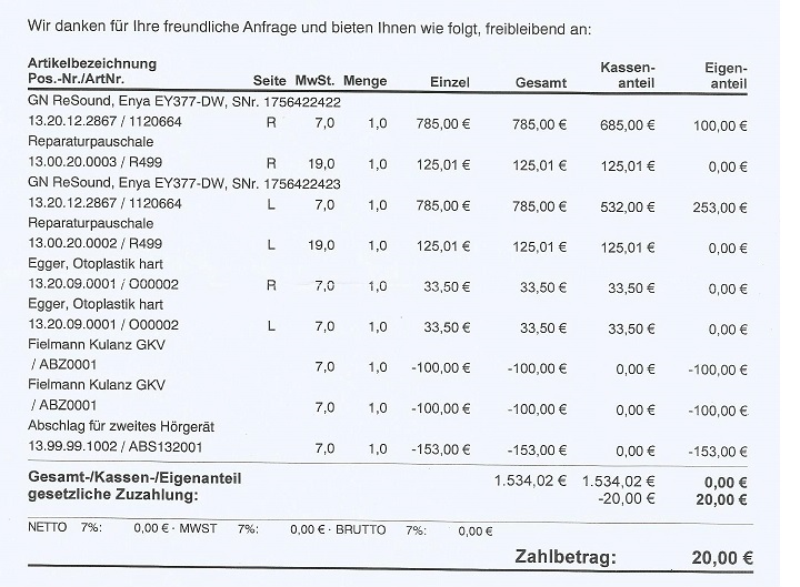Kostenvoranschlag beim Hörgeräte-Akustiker 1