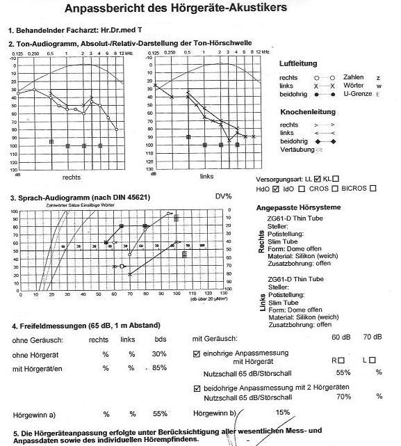 Ohrenärztliche Verordnung einer Hörhilfe, Messprotokoll