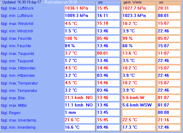 Minimal- und Maximalwerte des Tages