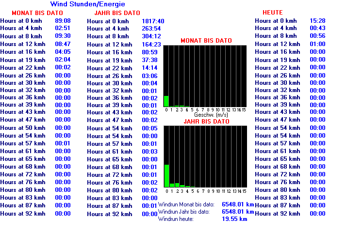 Die verschiedenen Windstärken mit jeweiliger Zeitdauer (für evtl. Energie-Gewinnung)
