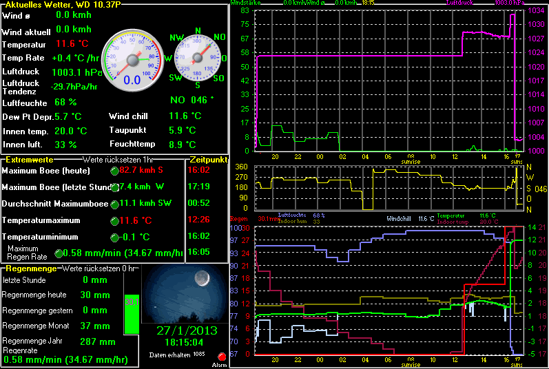 Detaillierte analoge Darstellung der Wetterdaten