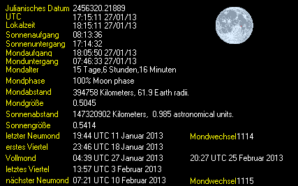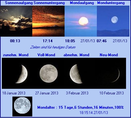 Auf- und Untergänge von Sonne und Mond im Siebengebirge