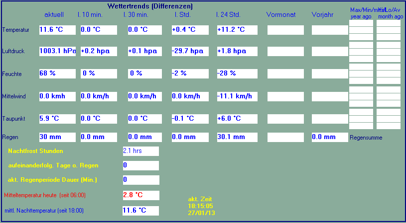 Wetter-Trends, Vergleich Istand zu vorherigen Zeiten